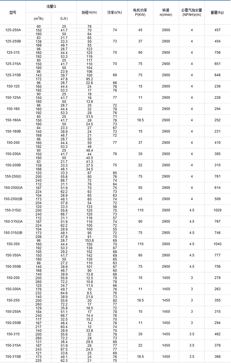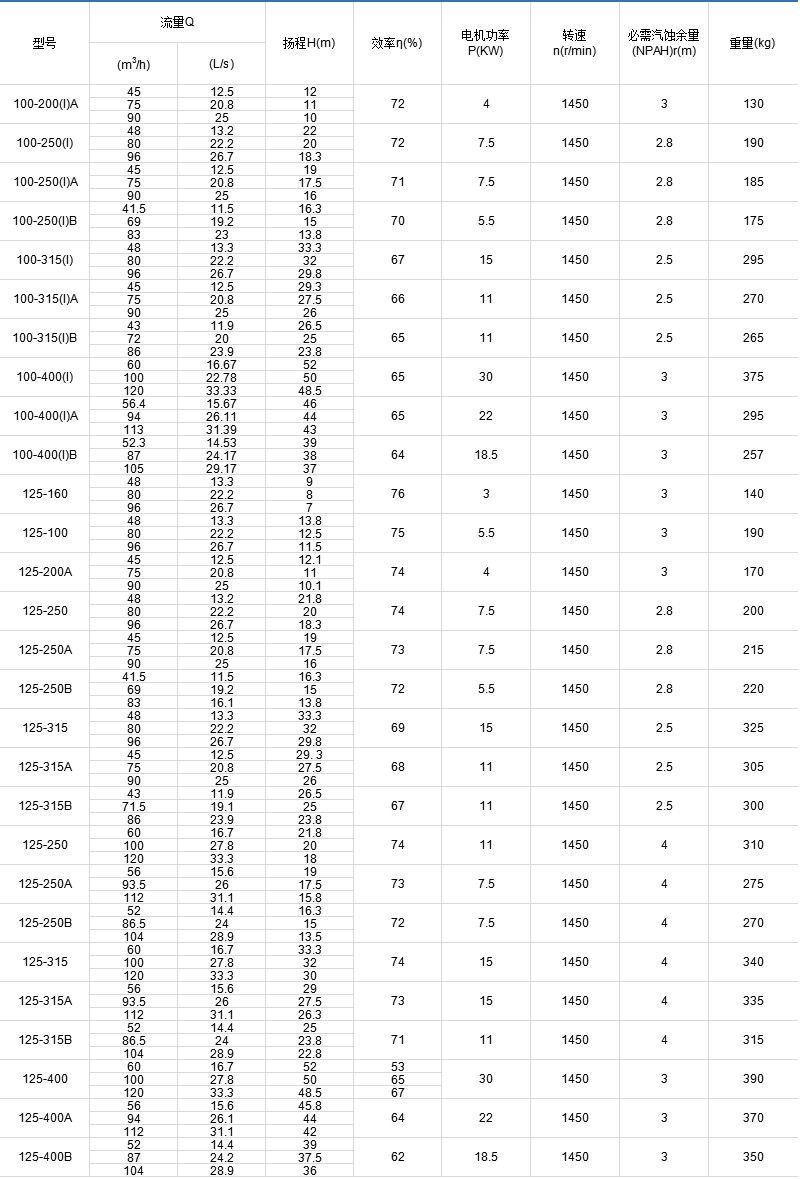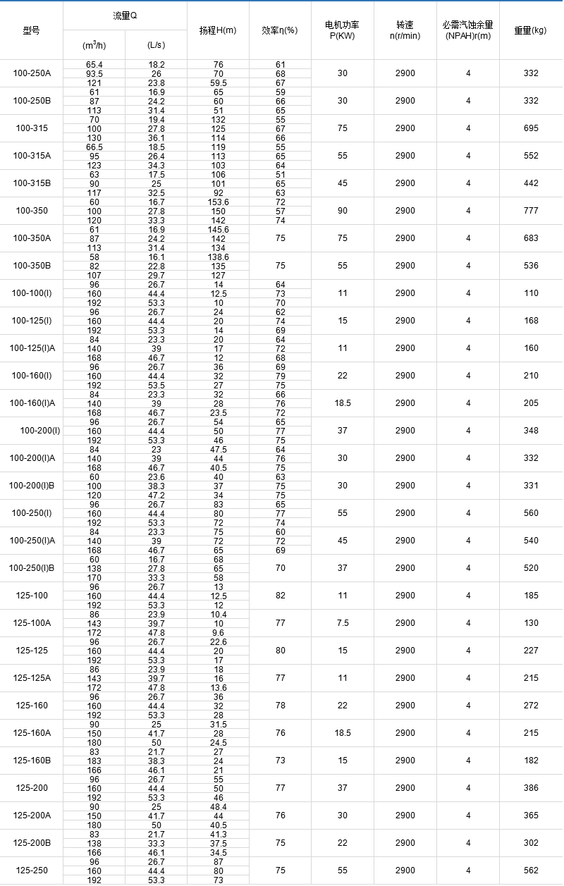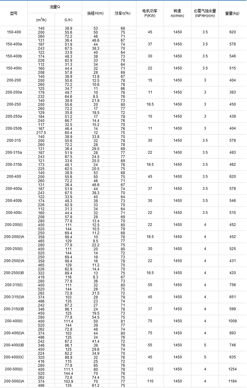 ◆ 吸入壓力≤1.0mpa,或泵系統最高工作壓力≤1.6mpa,即吸入口壓力+泵揚程≤1.6mpa、泵靜壓試驗壓力為≤2.5mpa,訂貨時請注明系統工作壓力。泵系統工作壓力大于1.6mpa時應在訂貨時另行提出,以便在制造時泵的過流部分和聯接部分采用鑄鋼材料。