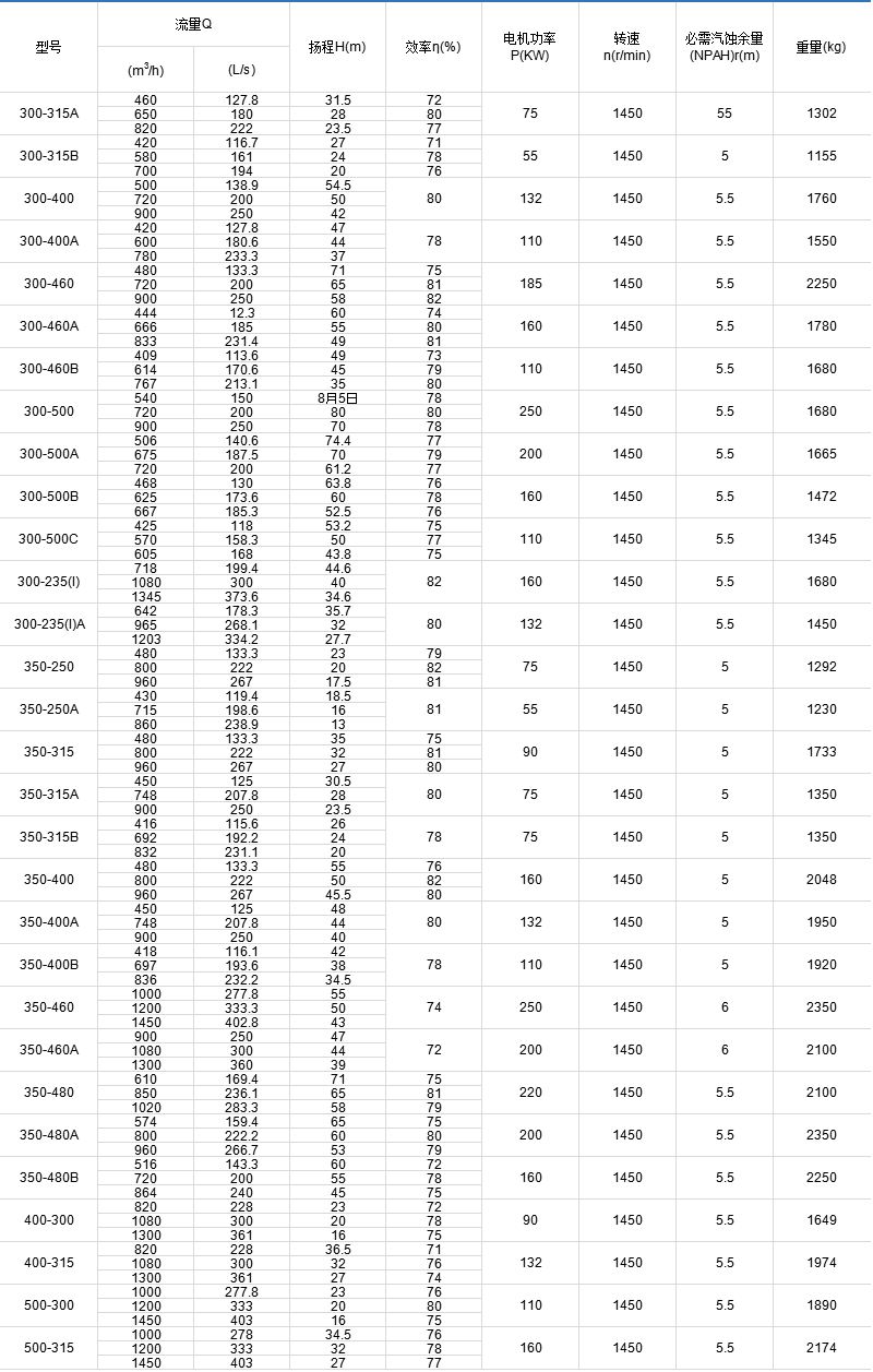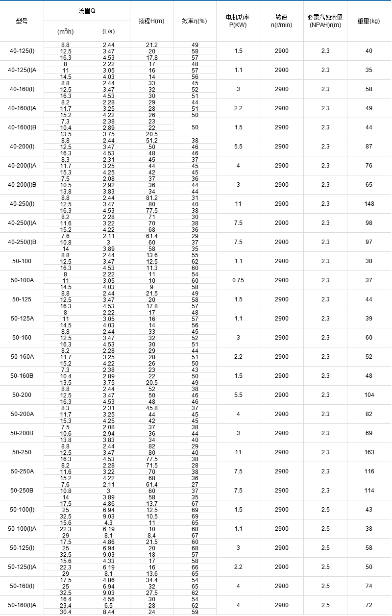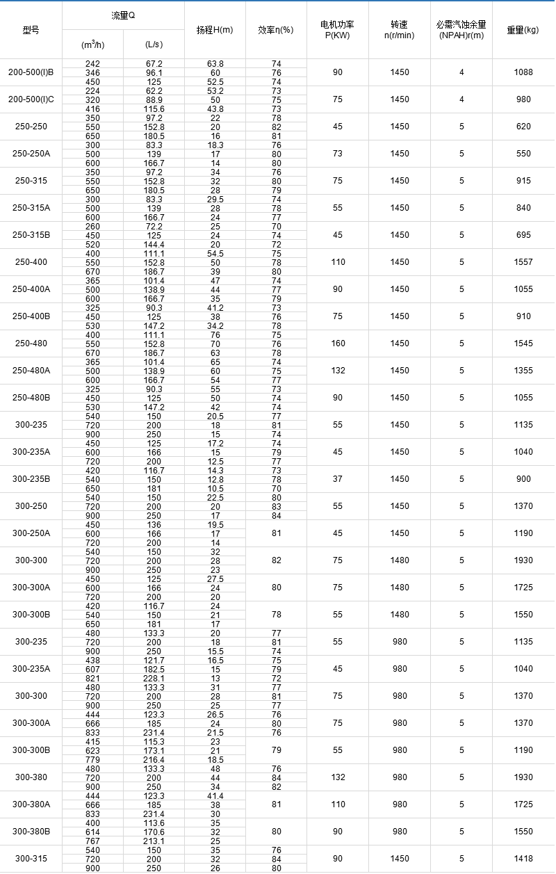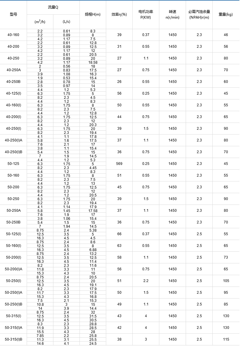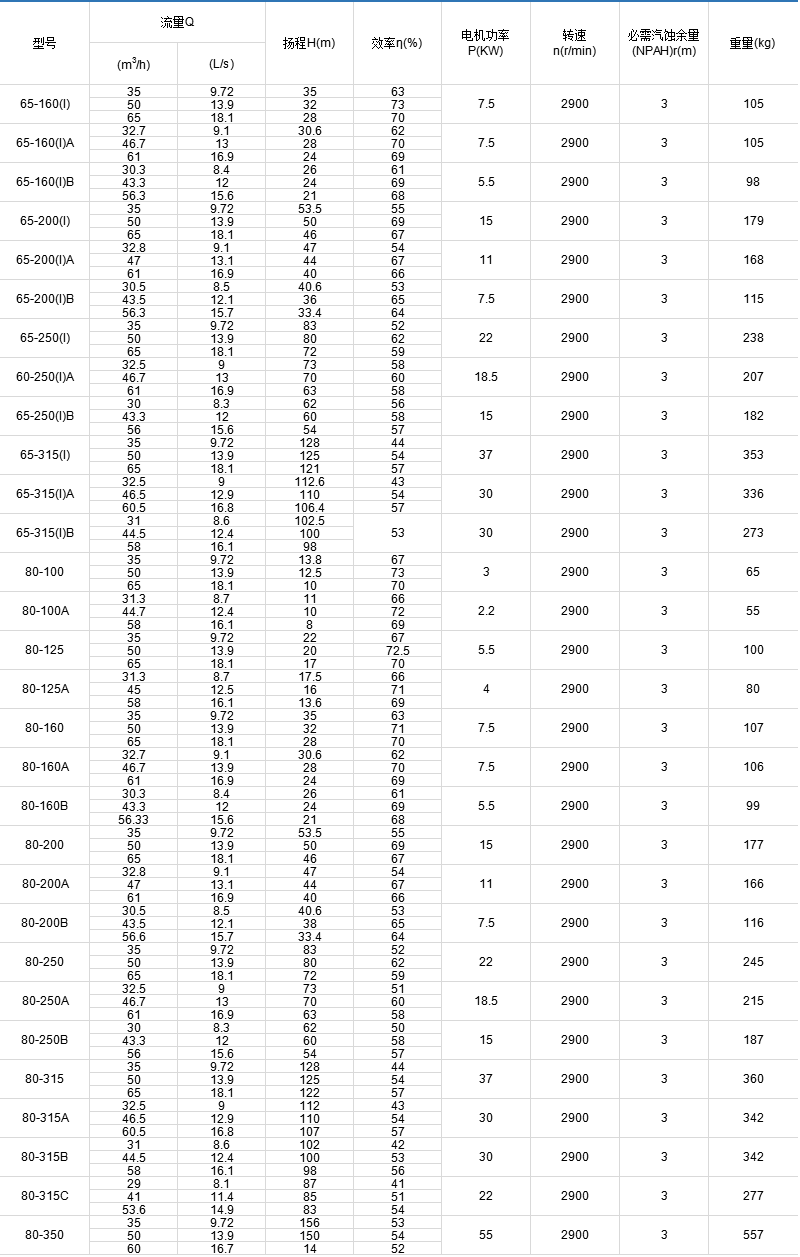◆ 吸入壓力≤1.0mpa,或泵系統最高工作壓力≤1.6mpa,即吸入口壓力+泵揚程≤1.6mpa、泵靜壓試驗壓力為≤2.5mpa,訂貨時請注明系統工作壓力。泵系統工作壓力大于1.6mpa時應在訂貨時另行提出,以便在制造時泵的過流部分和聯接部分采用鑄鋼材料。