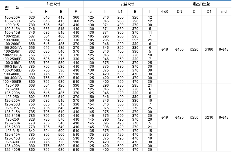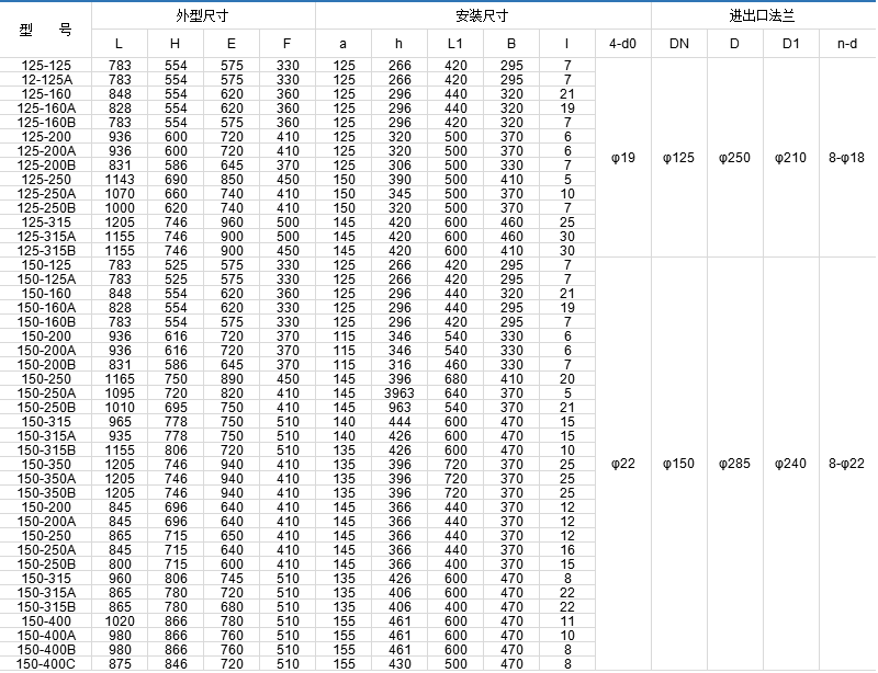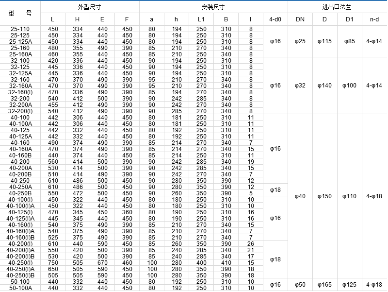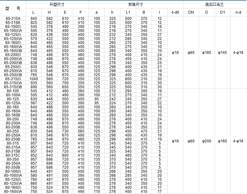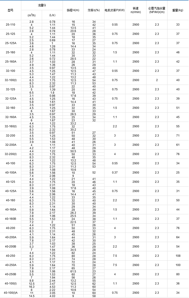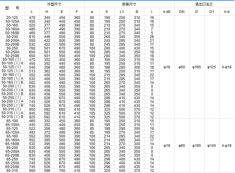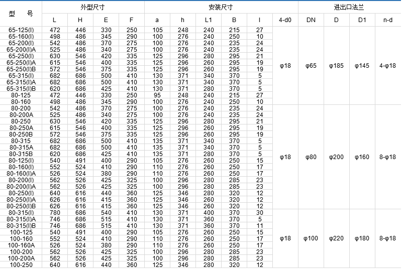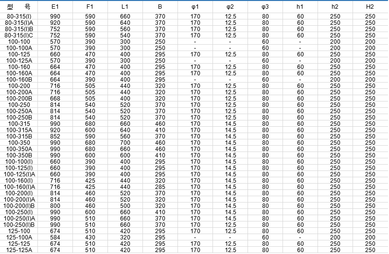 ◆ 吸入壓力≤1.0mpa,或泵系統最高工作壓力≤1.6mpa,即吸入口壓力+泵揚程≤1.6mpa、泵靜壓試驗壓力為≤2.5mpa,訂貨時請注明系統工作壓力。泵系統工作壓力大于1.6mpa時應在訂貨時另行提出,以便在制造時泵的過流部分和聯接部分采用鑄鋼材料。